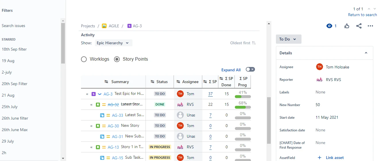 Epic Hierarchy on Issue Screen